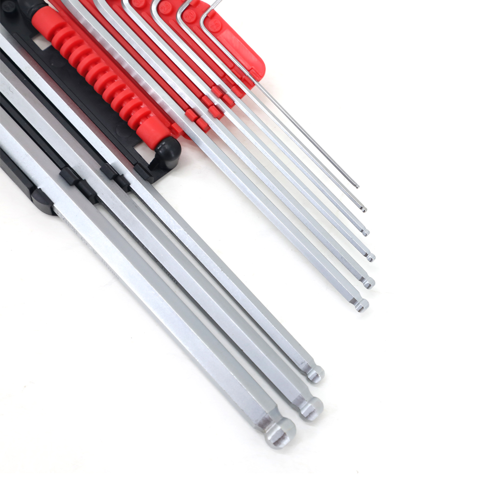 ■9PCS Metric hex key set 1.5,2,2.5,3,4,5,6,8,10mm■ Made of CRPCS V.Heat treated■ Inserted in nut easily with chamfer design at the end
