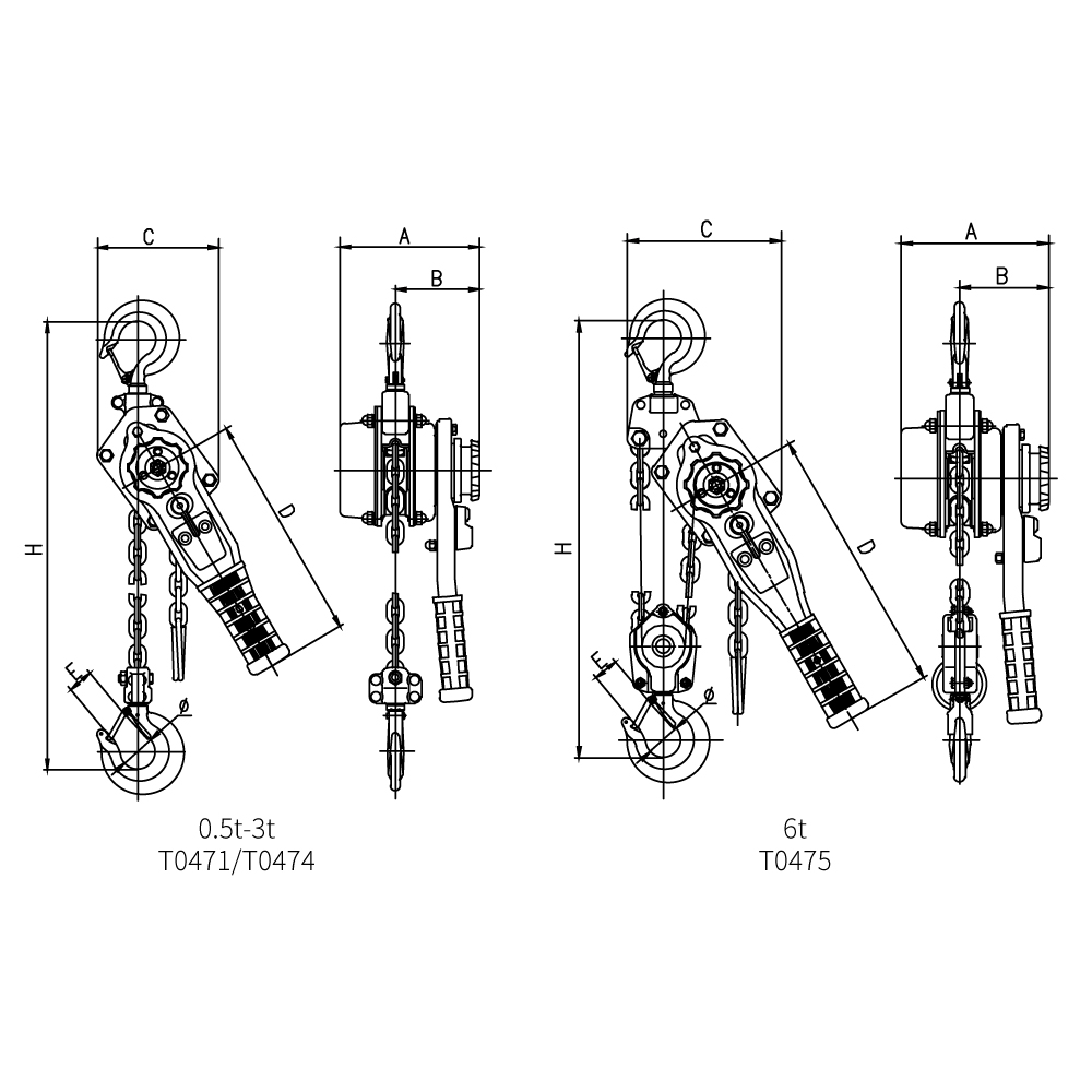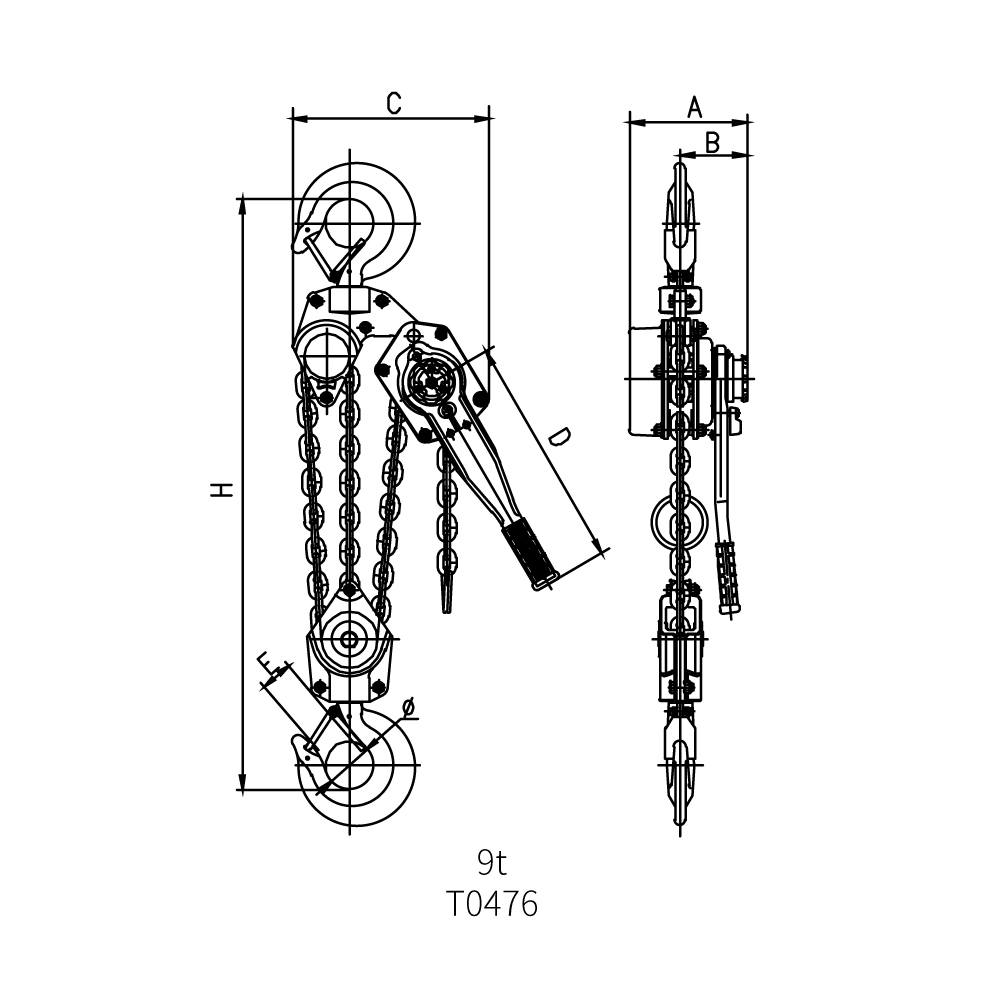 • Optional overload limiter, special chain storage bag, stainless steel lifting chain
